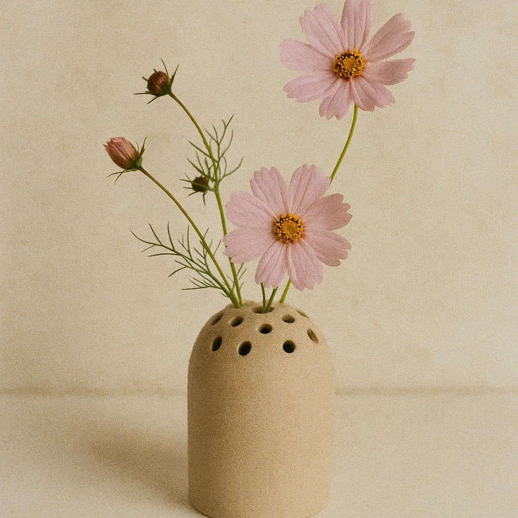 - This natural ceramic flower frog with a bud vase style is great for minimalistic decor.