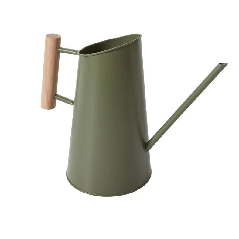 The Preston Watering Can is made from galvanized steel with a matte sage green finish & clean wooden handle. Available in two sizes.