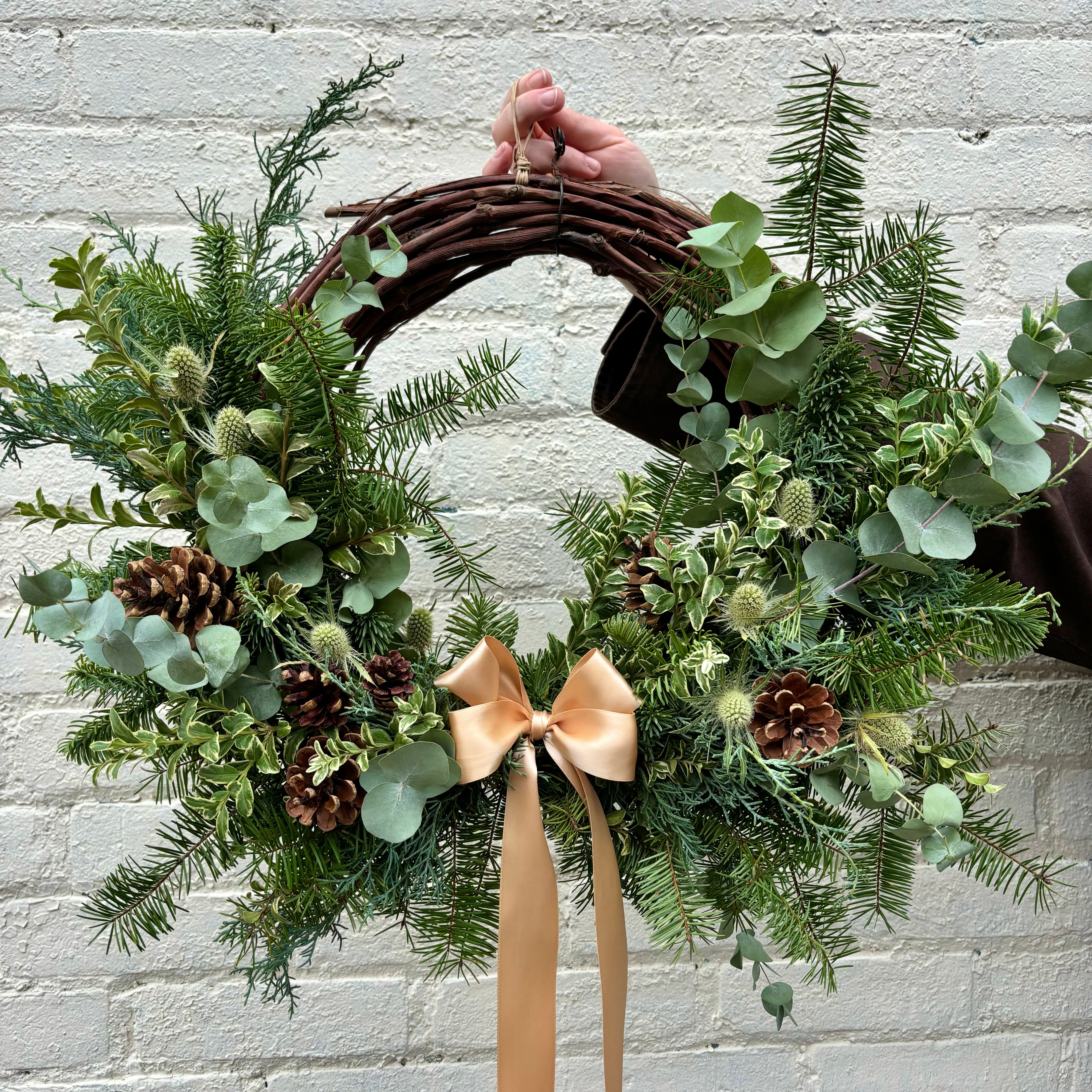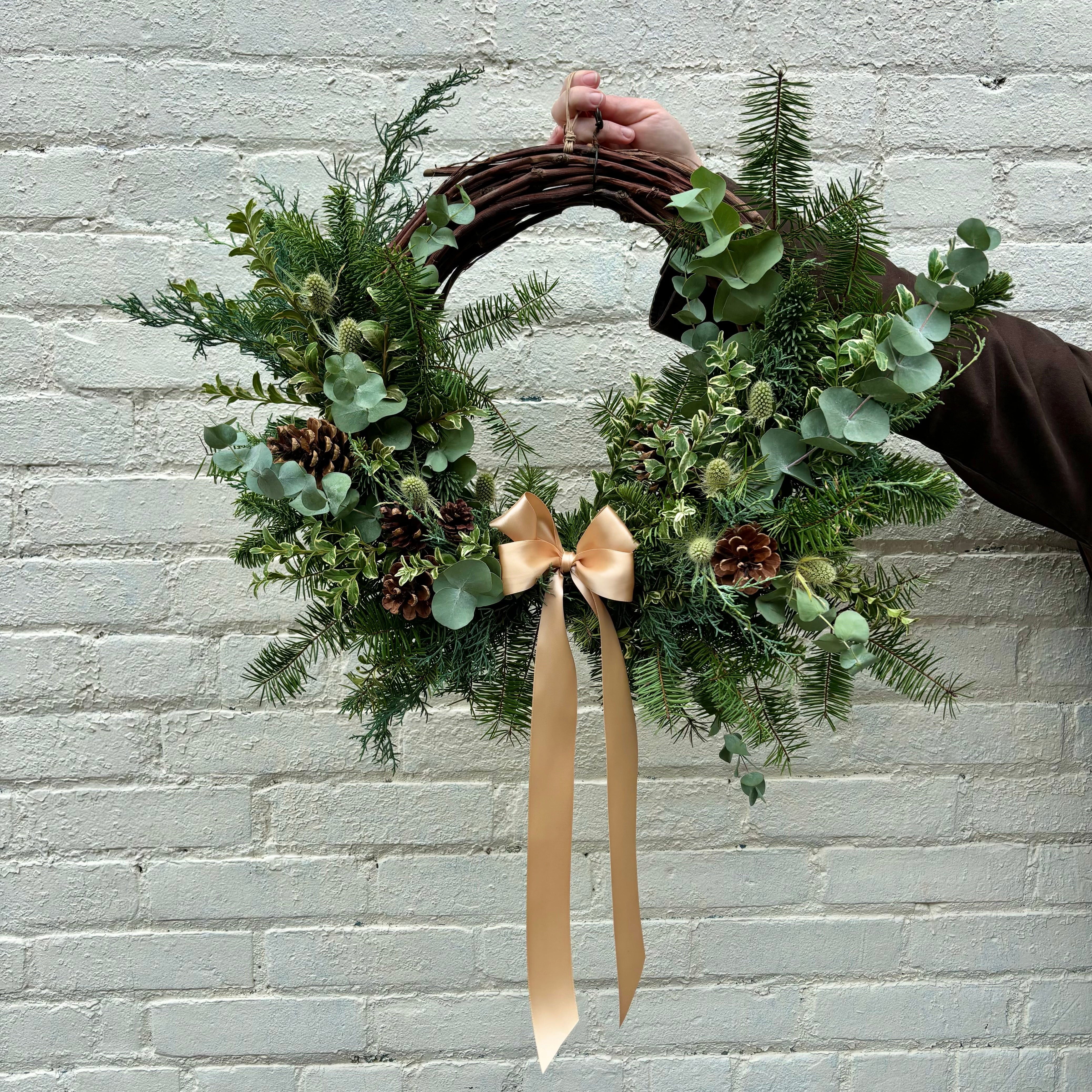 Your fresh winter wreath is best suited for outdoors hanging on an exterior facing door or wall and can last ~3 months. If you choose to hang your winter wreath indoors, the foliage will dry out quicker and may not last as long.