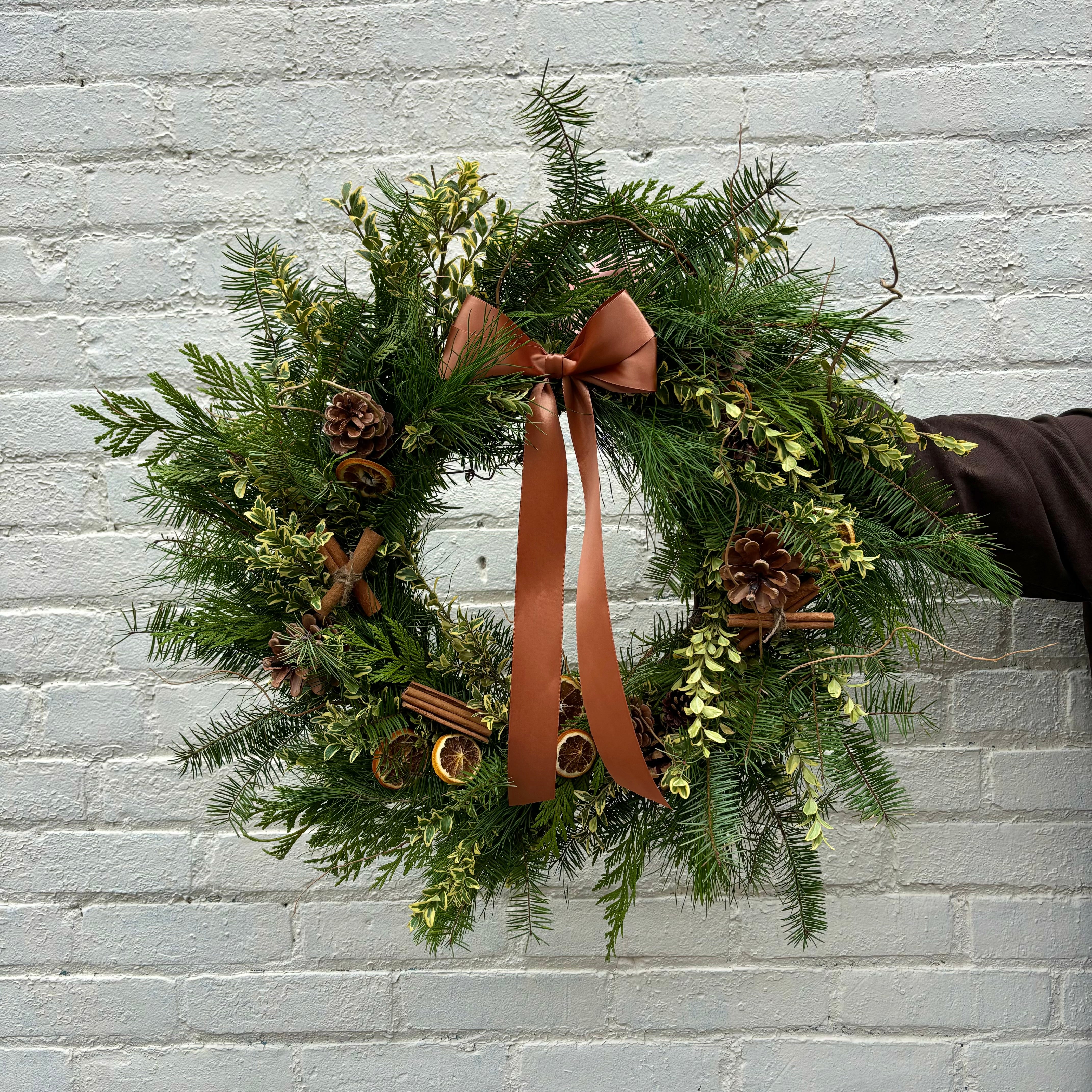 Your fresh winter wreath is best suited for outdoors hanging on an exterior facing door or wall and can last ~3 months. If you choose to hang your winter wreath indoors, the foliage will dry out quicker and may not last as long.